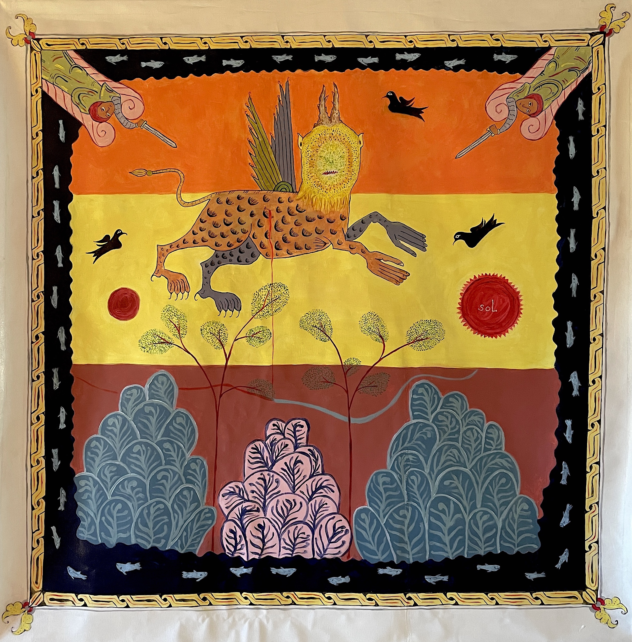 The monsters and angels of Revelations signal the beginning of God’s eternal kingdom on earth. Destruction and rebirth. No longer fearing religious persecution.